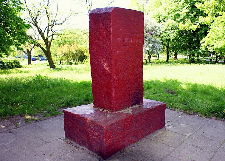 W okolicy placu zabaw nadal stoi pomnik-głaz ustawiony w